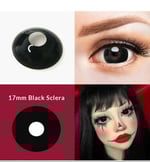 If you want to enlarge the black part of your sclera, try this pair of 17mm diameter all black mini sclera eyes. These lenses make your eyes deep and mysterious with all black design and smaller pupil size.